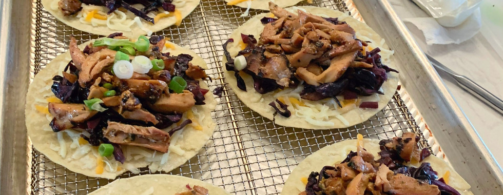 This was fun to make, used everything we had in the fridge/pantry plus our leftover Korean BBQ pork. The pork was chopped and sautéed in a pan with Fresh Cilantro and a touch of water to add moisture to prevent the meat from drying out when warming